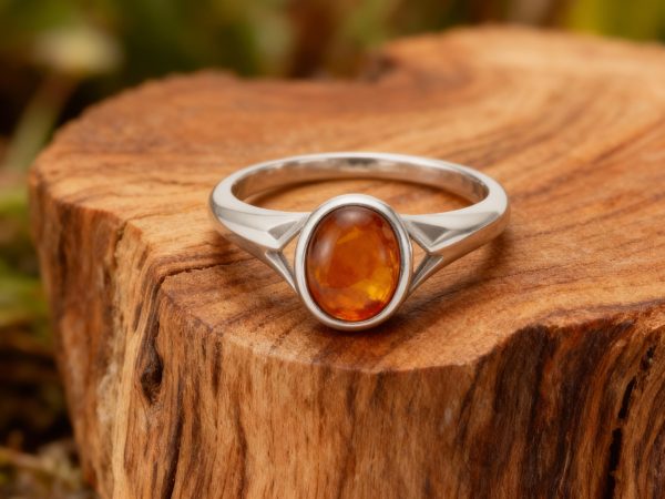 Anillo artesanal de plata 925 con ámbar chiapaneco natural, diseño minimalista que refleja la pureza y la luz del amanecer. Cada pieza es única, hecha a mano en México, símbolo de energía solar y armonía interior.
