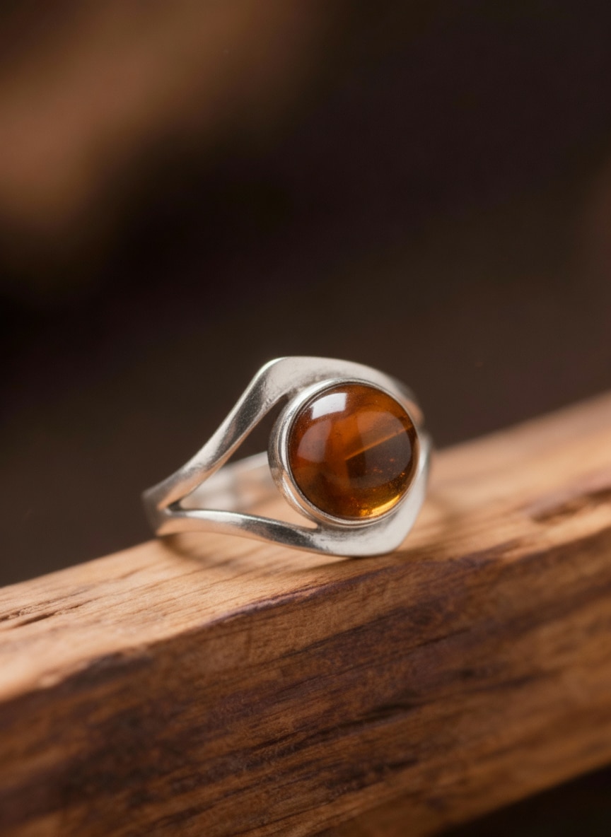 Forjado a mano por orfebres mexicanos, este anillo honra el legado del ámbar como símbolo de protección y energía vital. Cada reflejo dorado es una chispa de historia natural, un testimonio de la vida preservada por millones de años.