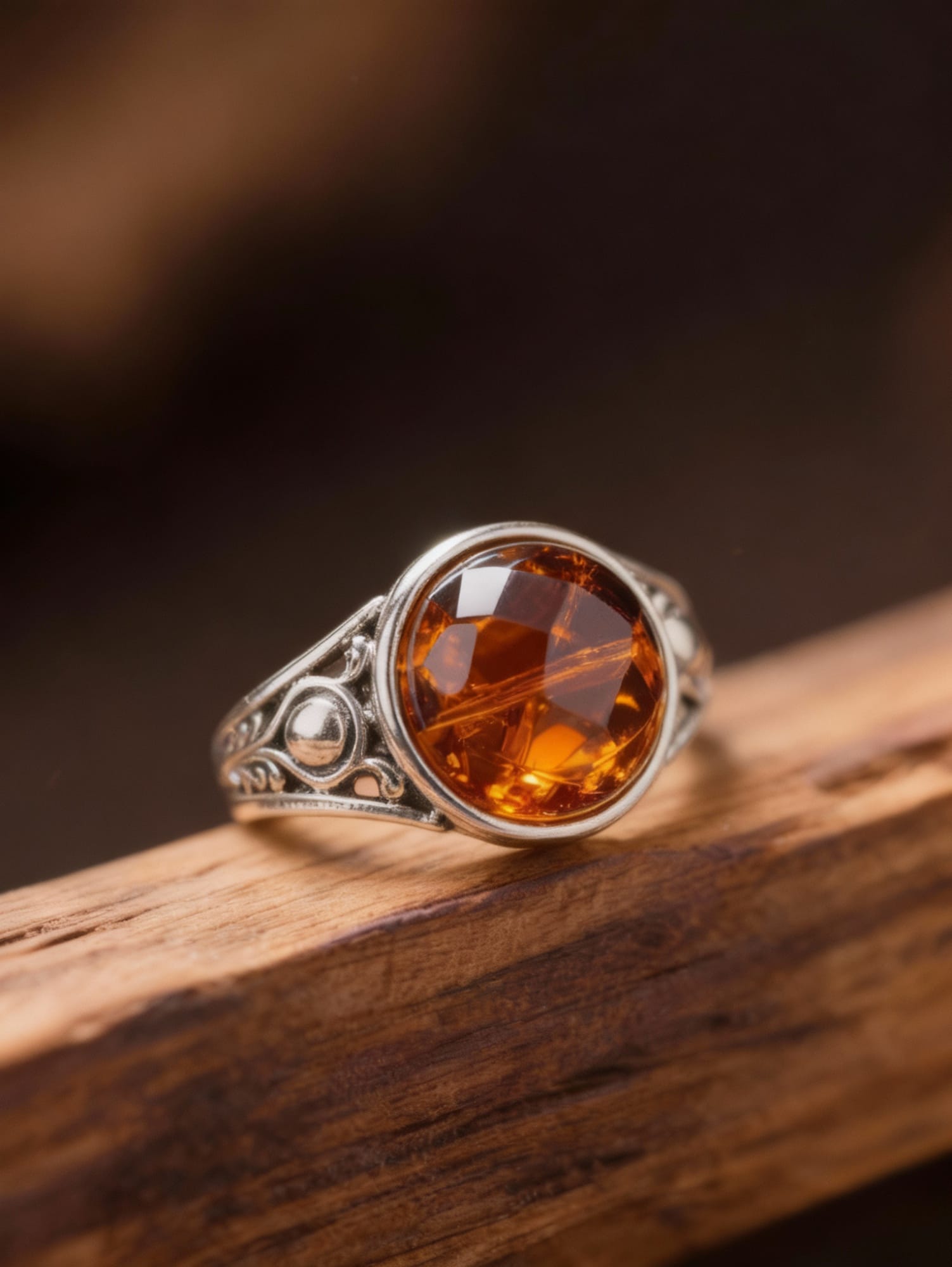 Anillo de Ámbar Chiapaneco y Plata 925 — “Fuego del Tiempo”